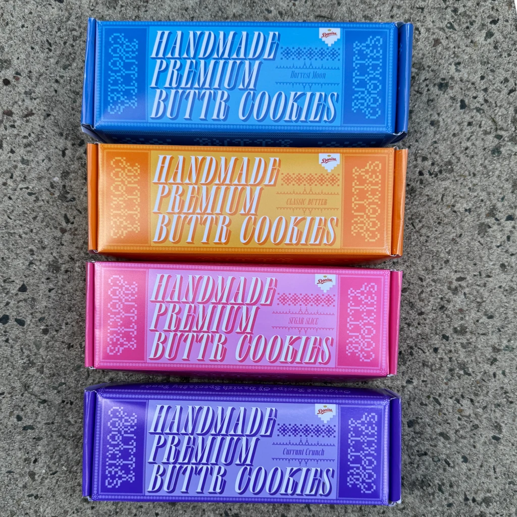 This project is a packaging redesign for Danisia Cookies. Using the original text from the existing packaging, we created two distinct design variations one featuring a modern, contemporary look tailored for today’s audience, and the other evoking a classic, nostalgic aesthetic that reflects the charm of earlier times.